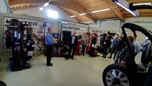 Przedstawiamy relację zdjęciową z monachijskiego spotkania „HUNTER International Distributor Meeting” z udziałem przedstawicieli WIMAD. Podczas spotkania zaprezentowano nowy komputerowy system do pomiaru i regulacji geometrii ustawienia kół i osi pojazdów HUNTER PA260 z kamerami HS222 (HQ Target) oraz system do montażu i wyważania kół HUNTER WalkAway składający się z montażownicy do kół HUNTER Revolution TCR1X i wyważarki do kół HUNTER RFE.