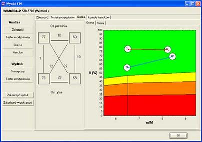 W nowym oprogramowaniu wyniki z układu pomiarowo – napędowego drgań zawieszenia (FWT) nie są podawane jedynie w postaci wyniku skuteczności ale prezentowane są w postaci wykresu. Jedną z osi jest skuteczność amortyzacji, drugą stosunek masy resorowanej m do masy nieresorowanej M. System FPS 2000 samodzielnie dokonuje analizy stosunku obu mas (m/M) i dla pojazdów lekkich dobiera inny niższy zakres dopuszczalnych wartości skuteczności amortyzacji. Ocena amortyzacji dokonywana jest w oparciu o analizę tych dwóch wielkości i jest zgodna z najnowszymi wymaganiami ITS. Jest to jedyna tego typu linia diagnostyczna na polskim rynku.