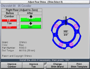 Shim-Select II – funkcja określająca model, rozmiar i położenie podkładki regulacyjnej (korekcyjnej) wymaganej do prawidłowej regulacji kąta pochylenia koła i zbieżności (na bazie porównania aktualnych pomiarów z danymi producenta pojazdu). Eliminuje wszelkie spekulacje, przypuszczenia oraz działania na chybił trafił, powodujące zakłopotanie czy spowolnienie pracy technika. Opcja liczy w czasie rzeczywistym wszystkie zmiany parametrów (zbieżność i pochylenie koła) wynikające z użycia podkładki. Pozwala również na wykorzystanie innych dostępnych podkładek w przypadku braku danej podkładki w magazynie (zawiera 9 marek podkładek w różnych rozmiarach i kształtach).