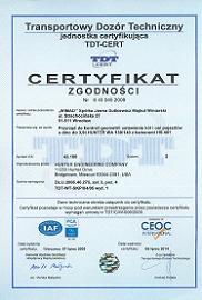 Certyfikat zgodności TDT nr 6 43 046 2009