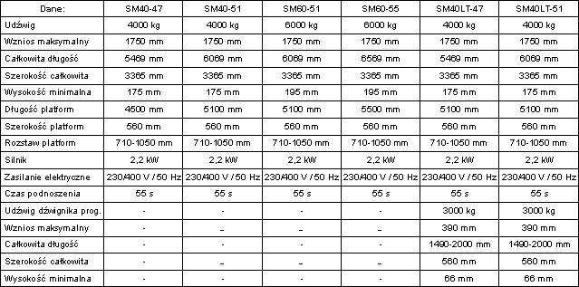 - SM40 o udźwigu 4000 kg